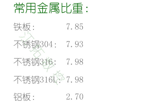 沖孔網重量計算器 >>沖孔網常用板材金屬比重表